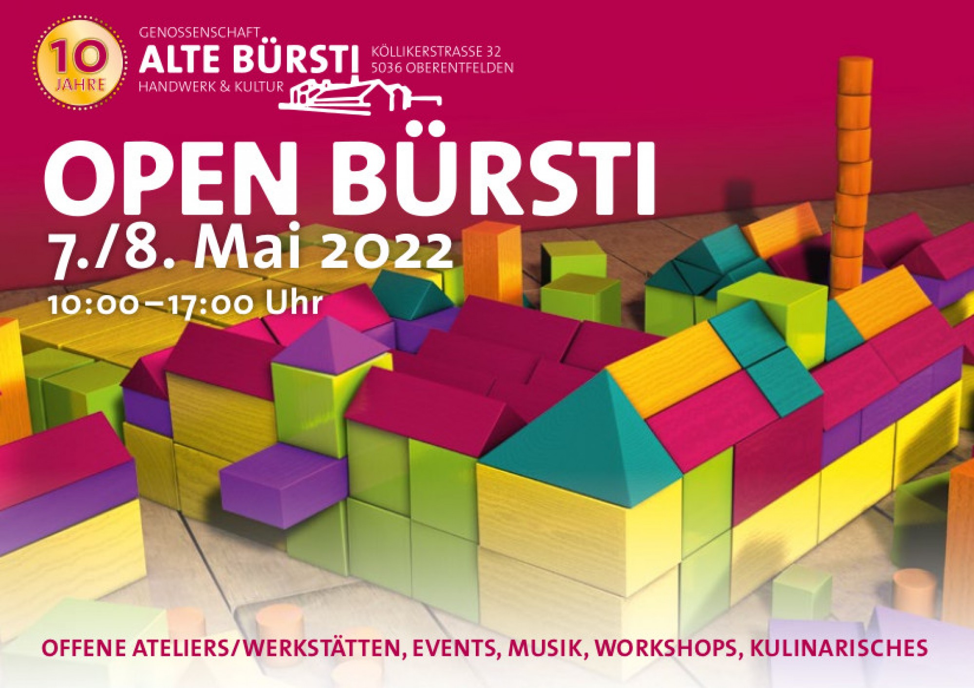 28.04.2022 Offene Ateliers, Workshops, Musik und FoodEs ist so weit! Die Open Bürsti 2022 steht vor der Tür! Komm vorbei, schau rein, es gibt viel zu entdecken und zu sehen. Auch für Speis und Trank wird gesorgt, Samstag sowie Sonntags.